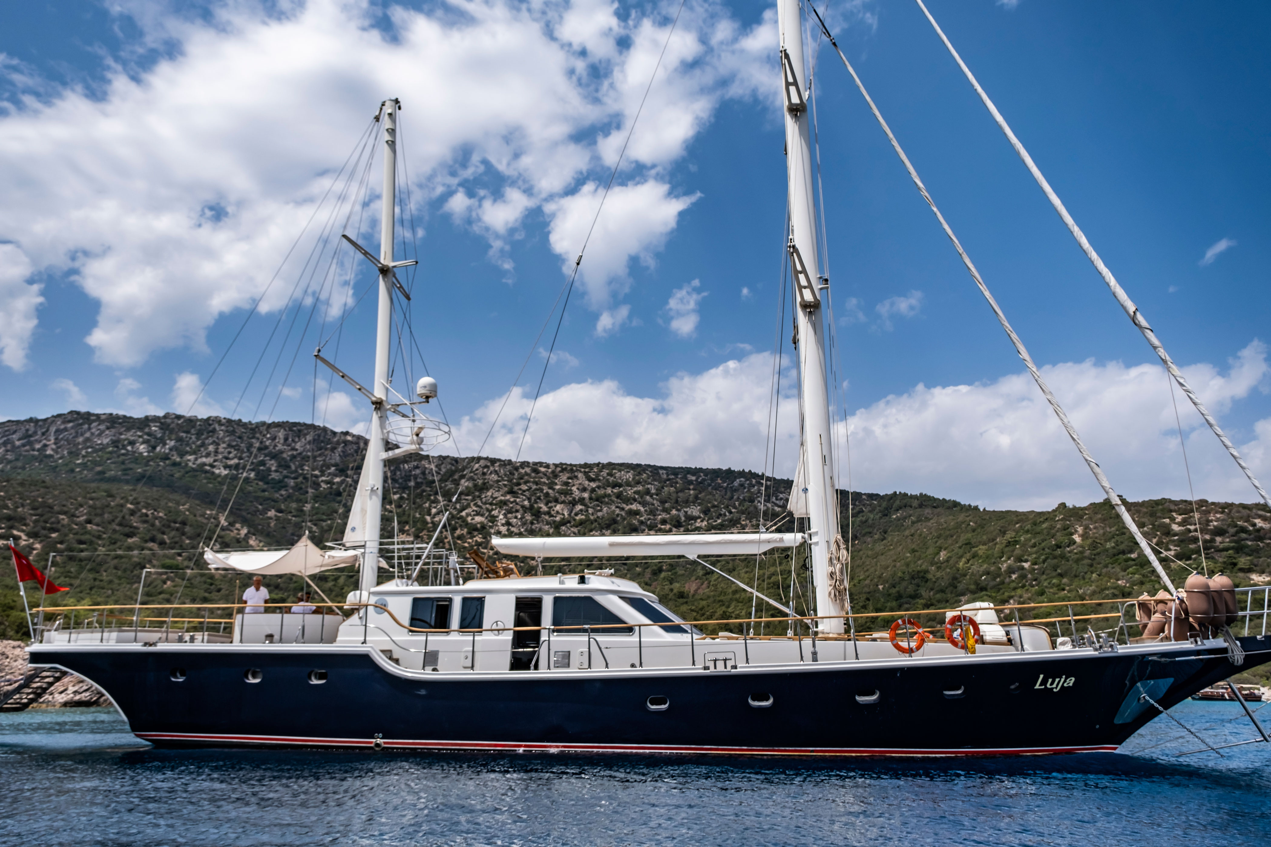 Luja Motor Sailing Yacht has taken its final form with the renovation it underwent in 2022. The yacht, with a length of 24.8 meters, provides blue cruise services from Bodrum with a crew of 4.