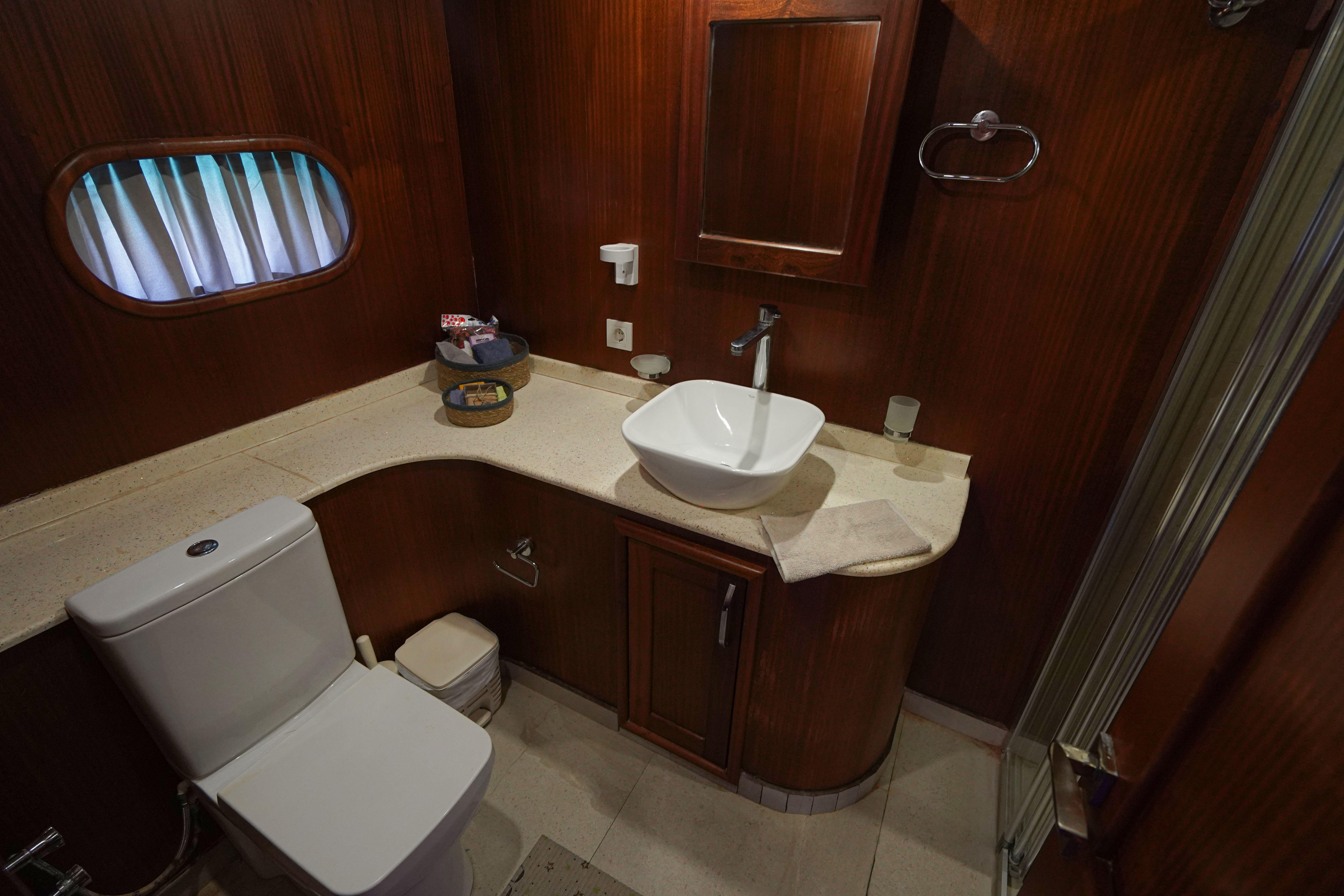 The gulet has 6 cabins: 2 master, 2 double, and 2 triple cabins. Each cabin is equipped with an LCD TV/DVD player, music system, air conditioning, bathroom with a shower cabin, toilet, hairdryer, bath and hand towels. The saloon features a comfortable seating area, table, LCD TV, and music system.