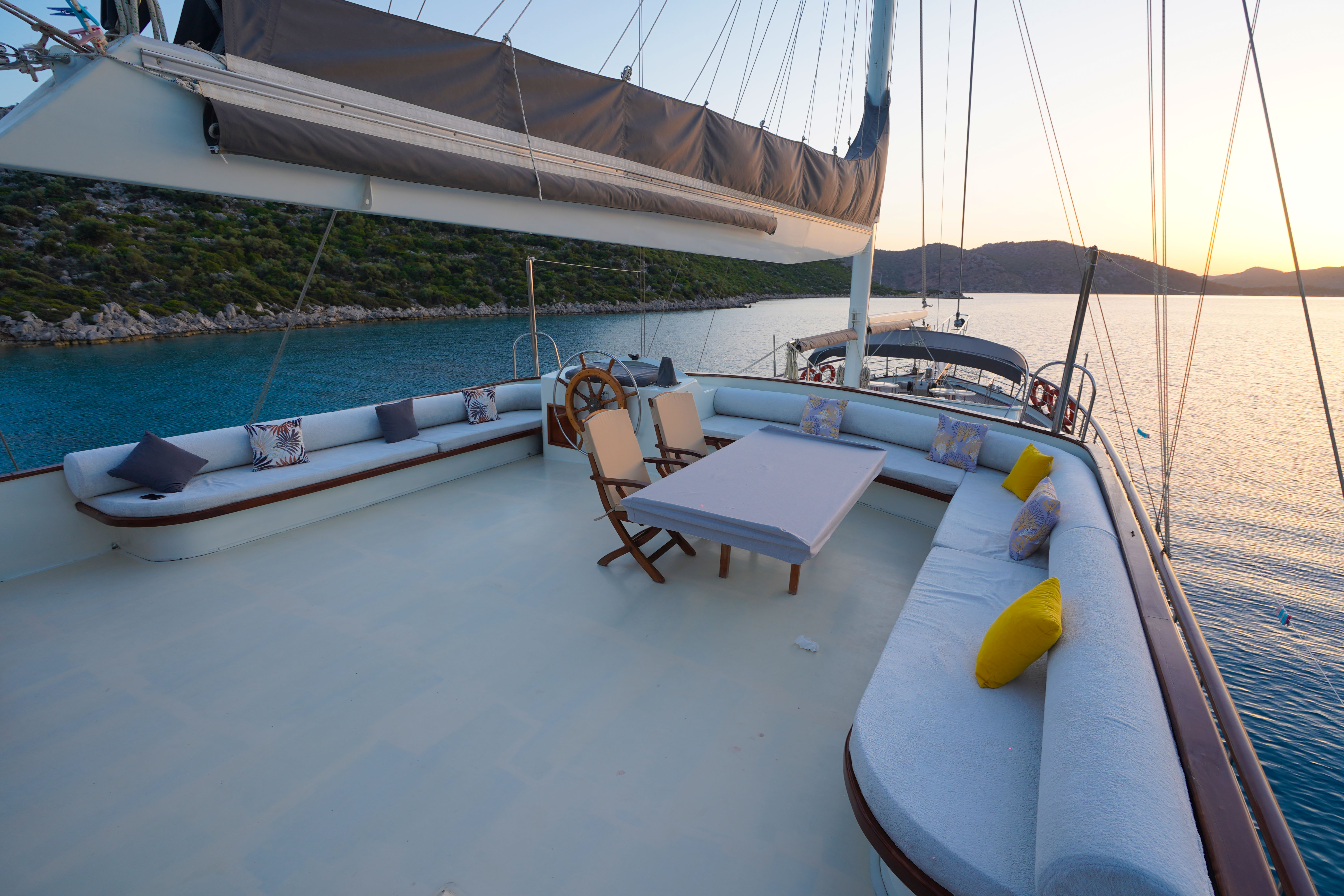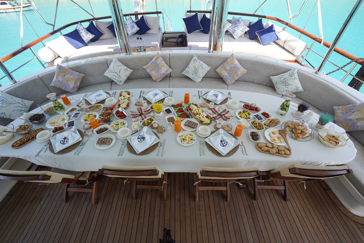 The gulet is fully equipped with safety and navigation equipment, including life jackets, fire extinguishers, and sailing equipment. It also has a water maker, satellite antenna, and internet access in Turkish territorial waters.