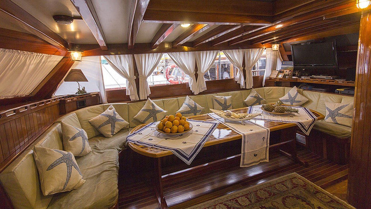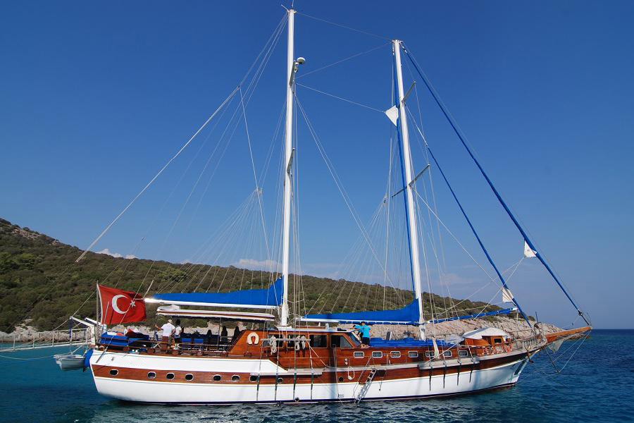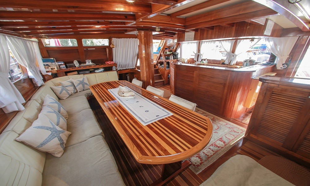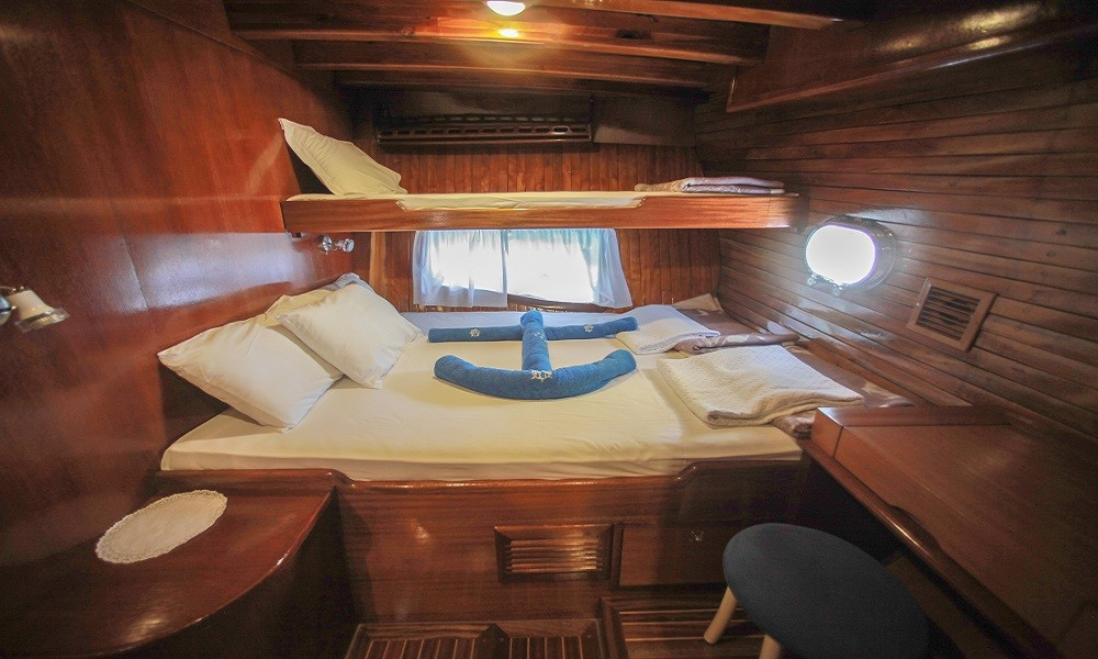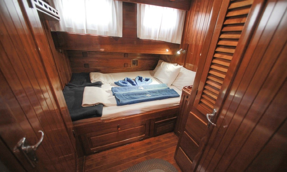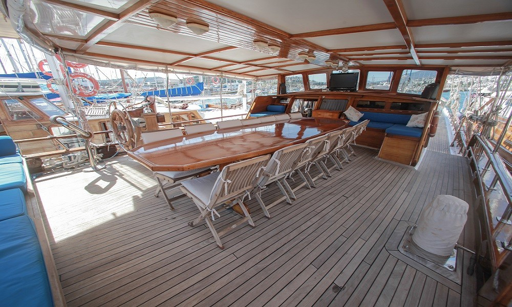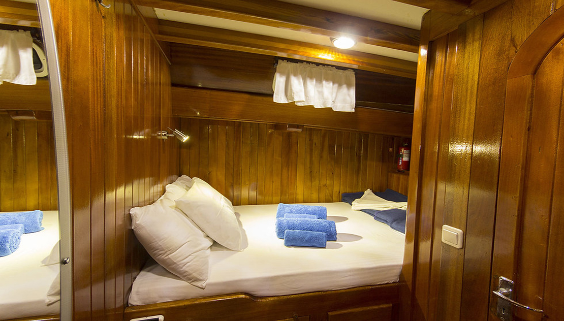 Gulet Sultan A, built in 1995 with a length of 28 meters and a beam of 7 meters, underwent a complete modern renovation in 2016, taking its current form. It accommodates 16 guests in a total of 8 cabins: 4 double cabins, 2 twin cabins, and 2 triple cabins. Our cabins are large, spacious, and modern, with air conditioning, shower, and restroom. Meals meticulously prepared in our fully equipped kitchen can be enjoyed on the aft deck or at elegant tables in the lounge. A music system, TV, and satellite channels are available for guests to enjoy, while the air conditioning, which adds to the comfort of the summer months, is always available for use. Additional onboard amenities include an ice machine, coffee machine, playing cards, backgammon, and okey. If you want to make the most of the blue seas, it's worth noting that the boat offers many advantages. Fishing equipment and diving gear are always available for your use. On the deck, there is a large cushioned seating area, a sunbathing area and sufficient sun cushions.